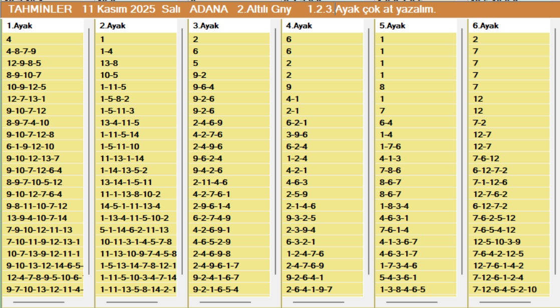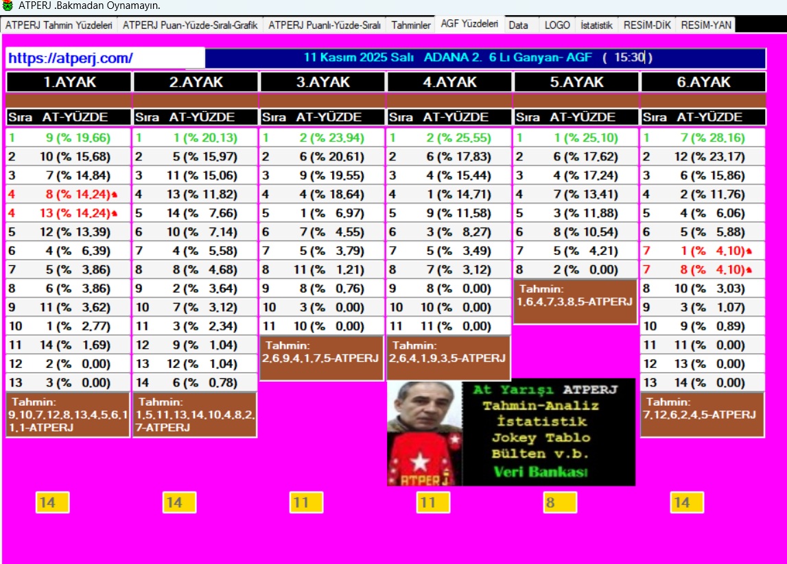 11 Kasım Salı ADANA 2.Altılı Gny ATPERJ agf yüzdesel tablo