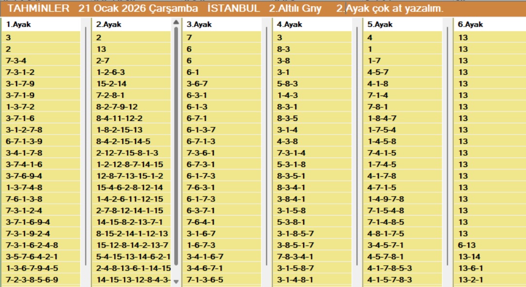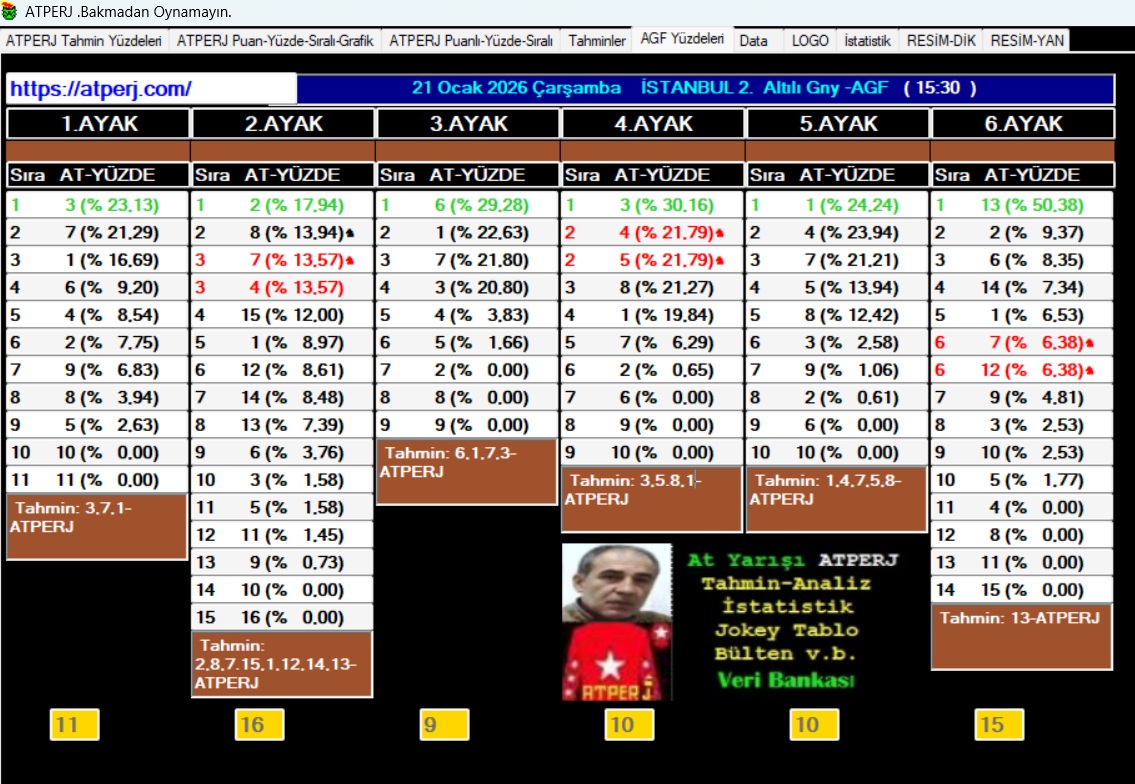ISTANBUL 2.Altılı Gny ATPERJ AGF Yüzdesel Tablo