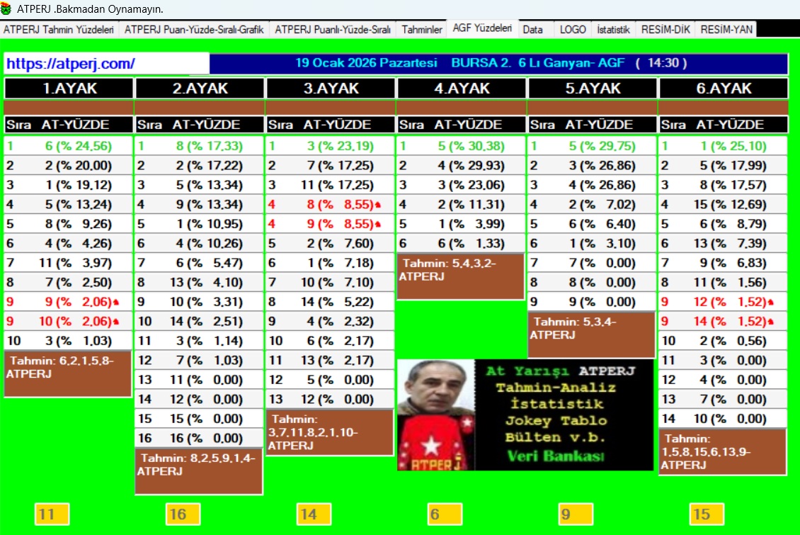 | 19 Ocak CUMA | Birinci | Altılı | Ganyan | Tahminim |